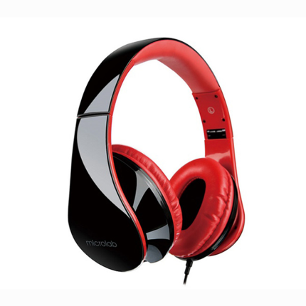 Microlab K360 Foldable Lightweight Headset With Line-In Microphone, 2X Stereo 40mm Drivers And 50mW(max.) Input Power – Black/Red Colour